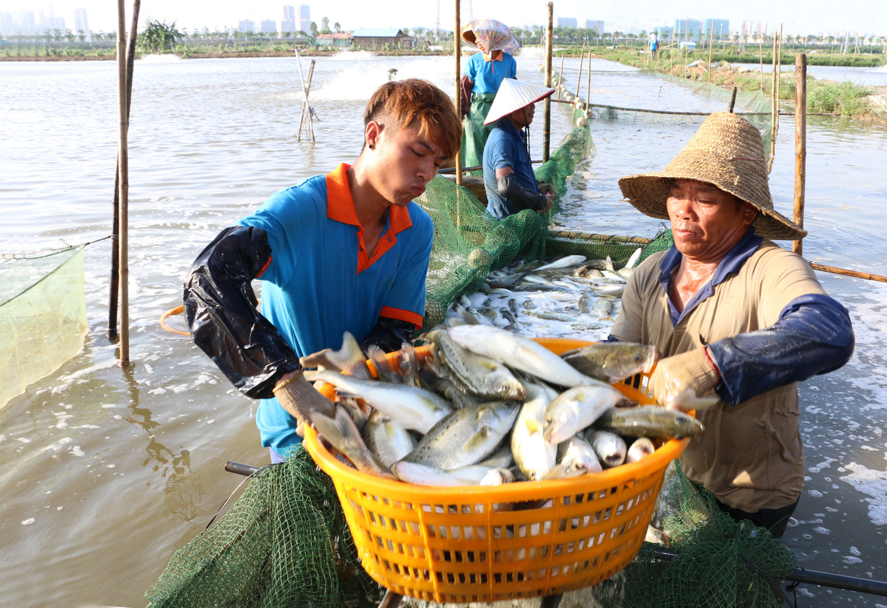 养殖户捕捞白蕉海鲈。